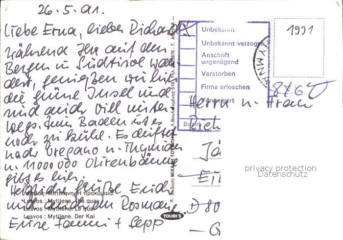old postcard Mytilini Teilansicht Kai postalisch gelaufen Erhaltung siehe scans