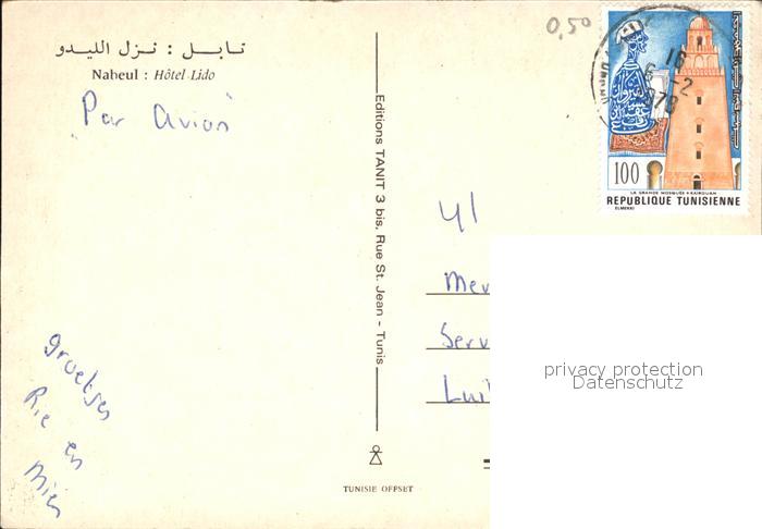 alte Postkarte Nabeul Hotel Lido postalisch gelaufen Erhaltung siehe scans