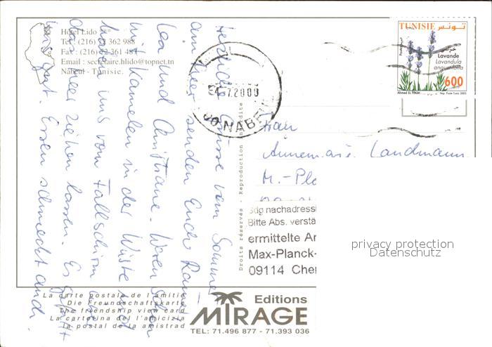 old postcard Nabeul Hotel Lido postalisch gelaufen Erhaltung siehe scans