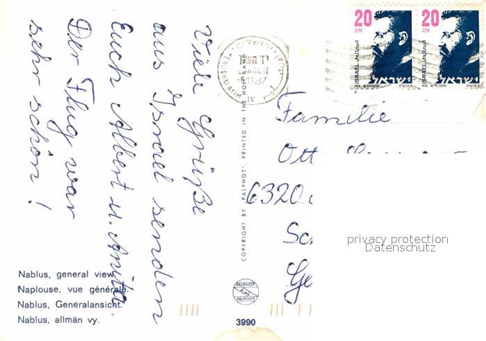 old postcard Nablus Panorama postalisch gelaufen Erhaltung siehe scans [KathaD81]