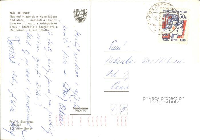 old postcard Nachod Tschechien Nové Mésto nad Metuji- námésti Hronov- Jiráskovo divadlo postalisch gelaufen Erhaltung siehe scans