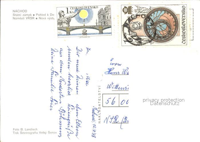 old postcard Nachod Tschechien Schloss Platz Hochhaeuser postalisch gelaufen Erhaltung siehe scans