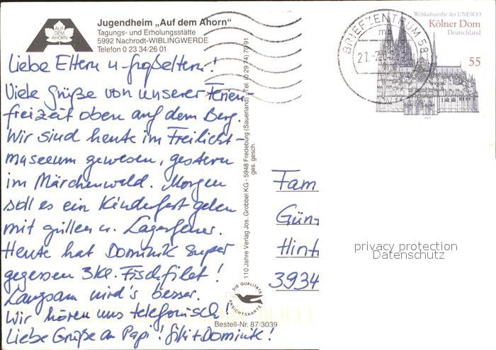 72082859 alte Postkarte Nachrodt-Wiblingwerde Jugendheim Auf dem Ahorn postalisch gelaufen Erhaltung siehe scans KatCode: 11110005962044