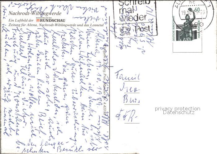 72467645 alte Postkarte Nachrodt-Wiblingwerde Luftbild postalisch gelaufen Erhaltung siehe scans KatCode: 11110005962044