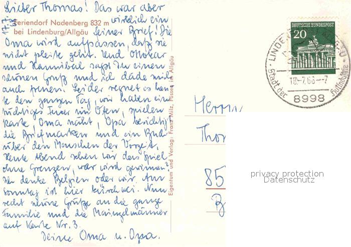 72839928 alte Postkarte Nadenberg Allgaeu bei Lindenburg Feriendorf postalisch gelaufen Erhaltung siehe scans [LiesaD40] KatCode: 11110009776117
