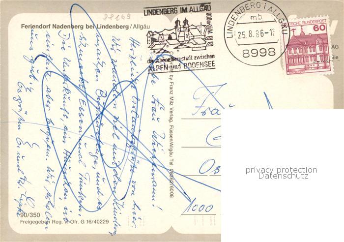 73647250 alte Postkarte Nadenberg Allgaeu Feriendorf Fliegeraufnahme postalisch gelaufen Erhaltung siehe scans [FriedD77] KatCode: 11110009776117