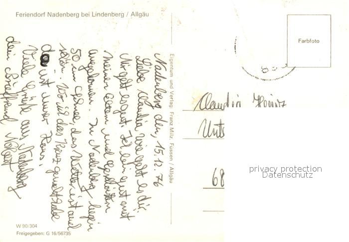 73070774 alte Postkarte Nadenberg Allgaeu Feriendorf im Winter Fliegeraufnahme postalisch gelaufen Erhaltung siehe scans [FriedD77] KatCode: 11110009776117