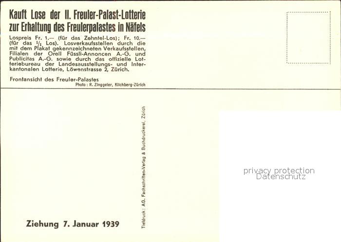 11631958 Naefels GL Freulerpalast II. Palast Lotterie postalisch nicht gelaufen Erhaltung siehe scans Alte Ansichtskarte Postkarte hz_F Katcode 11470090300900