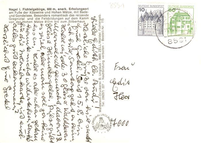 73949432 alte Postkarte Nagel Fichtelgebirge Oberfranken Im Gregnitztal Panorama Hohe Maetze Seepartie Blick vom Dreieck zur Koesseine postalisch gelaufen Erhaltung siehe scans [WerneD78] KatCode: 11110009479138