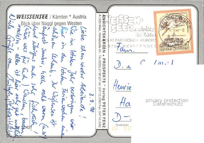 72108371 alte Postkarte Naggl Weissensee Fliegeraufnahme postalisch gelaufen Erhaltung siehe scans KatCode: 11390212020639