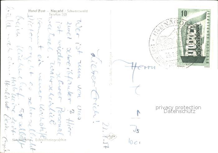 72076957 alte Postkarte Nagold Hotel Post postalisch gelaufen Erhaltung siehe scans KatCode: 11110008235046