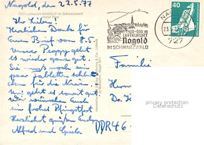 73722251 alte Postkarte Nagold Hotel Post Aussenansicht postalisch gelaufen Erhaltung siehe scans [LiesaD40] KatCode: 11110008235046