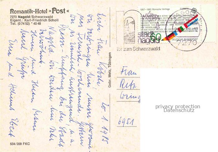 74043406 alte Postkarte Nagold Romantik Hotel Post Fachwerkhaus postalisch gelaufen Erhaltung siehe scans [FriedD77] KatCode: 11110008235046