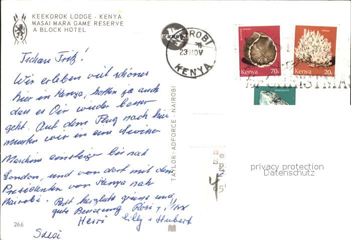 alte Postkarte Nairobi Masai Mara Game Reserve postalisch gelaufen Erhaltung siehe scans [AndreD76 kt121box]
