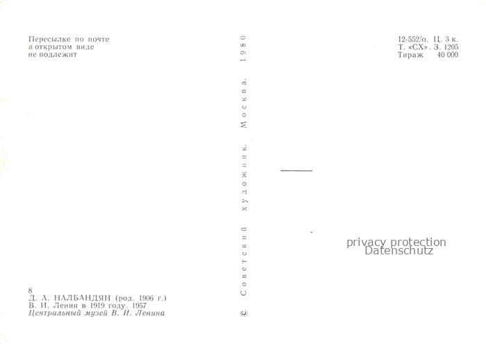 74042223 Nalbandjan Dmitri Kuenstlerkarte W.I. Lenin postalisch nicht gelaufen Erhaltung siehe scans [IrynaD87] KatCode: 22240000003200