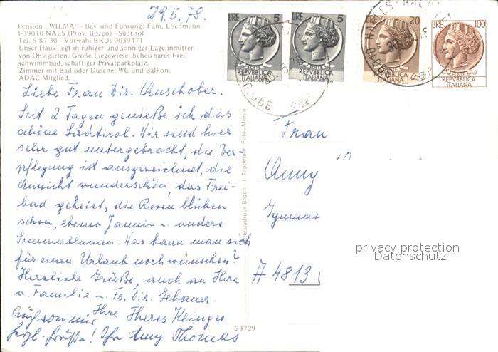 old postcard Nals Bozen Pension Wilma postalisch gelaufen Erhaltung siehe scans [NatalD47]