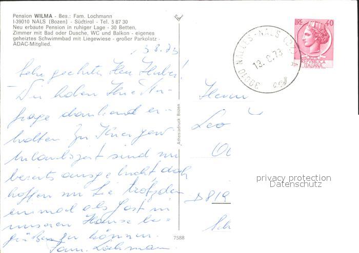 old postcard Nals Bozen Pension Wilma postalisch gelaufen Erhaltung siehe scans