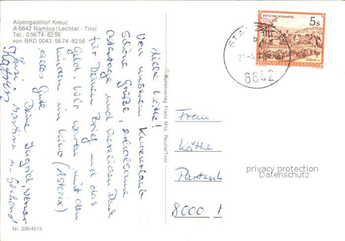 72494519 alte Postkarte Namlos Alpengasthof Kreuz postalisch gelaufen Erhaltung siehe scans KatCode: 11390331070823