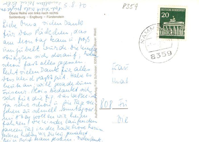 73886354 alte Postkarte Nammering Fuerstenstein Saldenburg Englburg Fuerstenstein Ortsansicht mit Kirche postalisch gelaufen Erhaltung siehe scans [FriedD77] KatCode: 11110009275121