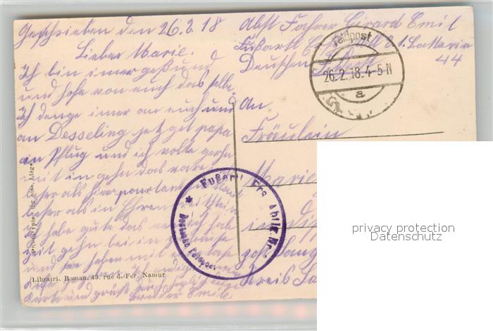 43500890 carte postale Namur sur Meuse la Sambre et le Donjon postalisch gelaufen Feldpost – Stempel Erhaltung siehe scans [WerneD78] KatCode: 11070092000454