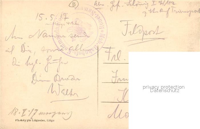 13341531 carte postale Namur sur Meuse Place d Armes postalisch gelaufen Feldpost – Stempel Erhaltung siehe scans [WerneD78] KatCode: 11070092000454