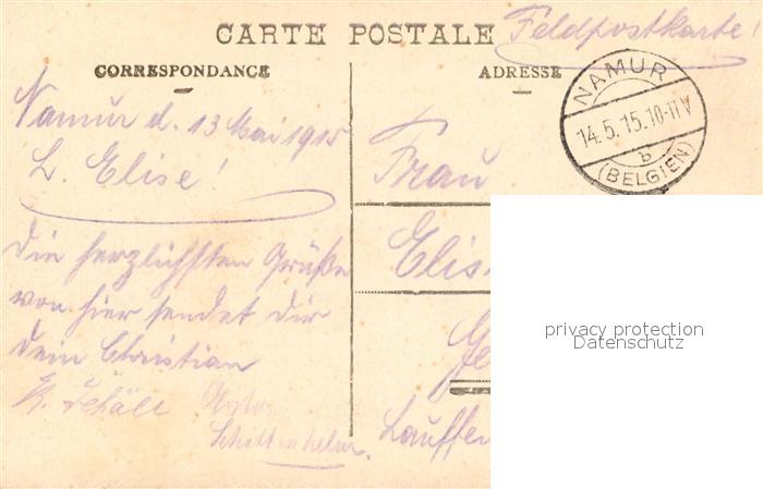 73336449 carte postale Namur Wallonie Citadelle postalisch gelaufen Feldpost Erhaltung siehe scans [LiesaD40] KatCode: 11070092000454