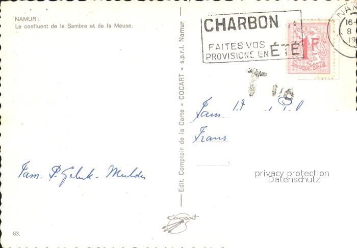 72470205 carte postale Namur Wallonie Fliegeraufnahme Le confluent de la Sambre et de la Meuse postalisch gelaufen Erhaltung siehe scans KatCode: 11070092000454
