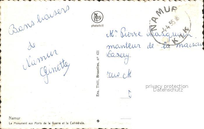 72394436 carte postale Namur Wallonie Monuments aux Morts de la Guerre Cathedrale postalisch gelaufen Erhaltung siehe scans KatCode: 11070092000454
