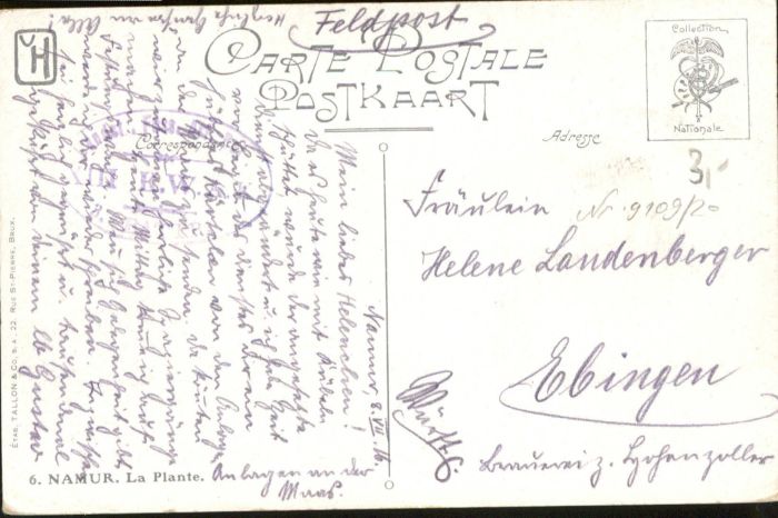 70787345 Namur Wallonie Namur Plante postalisch nicht gelaufen KatCode: 11070092000454