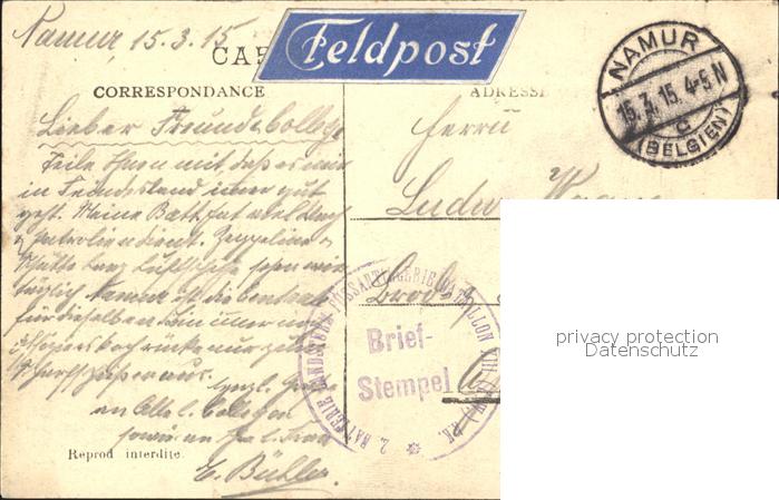 12044983 carte postale Namur Wallonie Pont de Salzinnes postalisch gelaufen Feldpost Erhaltung siehe scans KatCode: 11070092000454