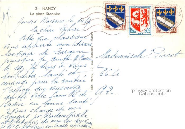 13826021 Nancy 54 La place Stanislas postalisch gelaufen Erhaltung siehe scans [FriedD77] carte postale Frie Katcode 11170054354395