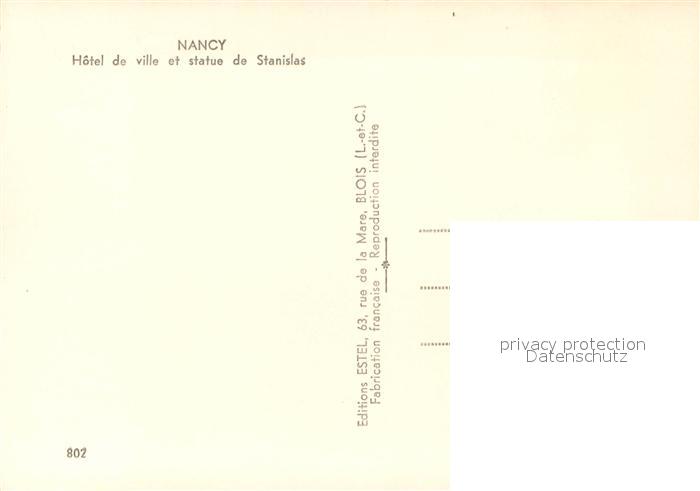 13592953 Nancy Lothringen Hotel de Ville et Statue de Stanislas postalisch nicht gelaufen Erhaltung siehe scans [LiesaD40] Lies Katcode 11170054354395
