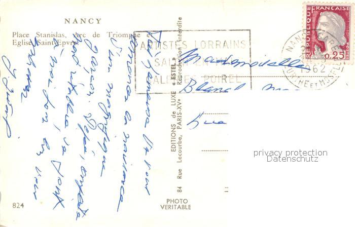 12955950 carte postale Nancy Lothringen Place Stanislav Monument Arc de Triomphe Eglise Saint Epvre postalisch gelaufen Erhaltung siehe scans [FriedD77] KatCode: 11170054354395