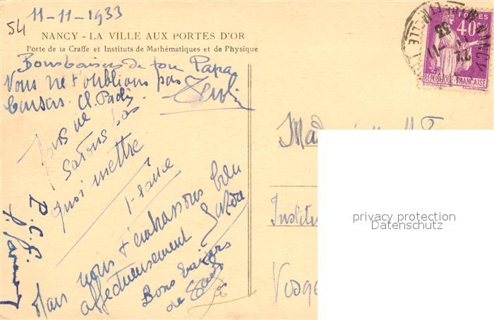 13529361 carte postale Nancy Lothringen Porte de la Craffe Instituts de Mathématiques et de Physique postalisch gelaufen Erhaltung siehe scans [FriedD77] KatCode: 11170054354395