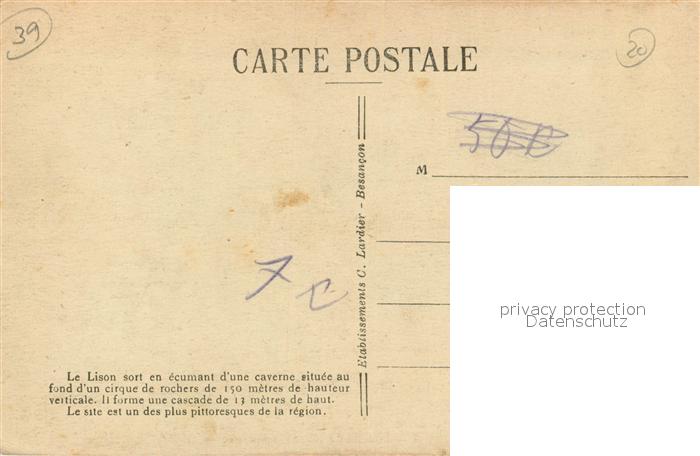 13504146 Nans-sous-Sainte-Anne Source du Lison Usine Electrique postalisch nicht gelaufen Erhaltung siehe scans [FriedD77] KatCode: 11170025125420
