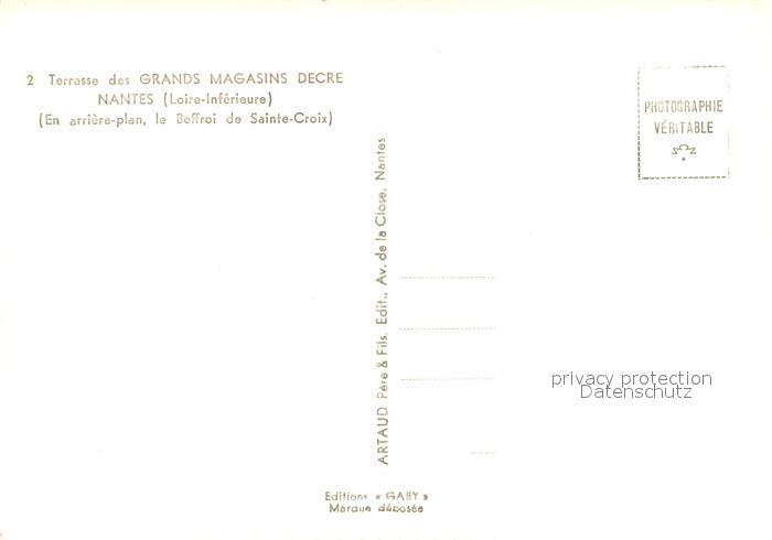 13747625 Nantes 44 Terrasse des Grands Magasins Decre Nantes Le Beffroi de Sainte Croix postalisch nicht gelaufen Erhaltung siehe scans [WerneD78] Wern Katcode 11170044244109