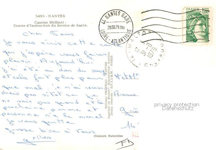 13638053 Nantes Loire Atlantique Caserne Mellinet Centre d’Instruction du Service de Sante postalisch gelaufen Erhaltung siehe scans [WerneD78] carte postale Wern Katcode 11170044244109