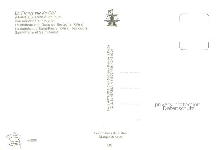 13628890 Nantes Loire Atlantique Chateau des Ducs de Bretagne Cathedrale Saint Pierre Cours Saint Pierre et Saint André Collection La France vue du ciel postalisch nicht gelaufen Erhaltung siehe scans [FriedD77] Frie Katcode 11170044244109