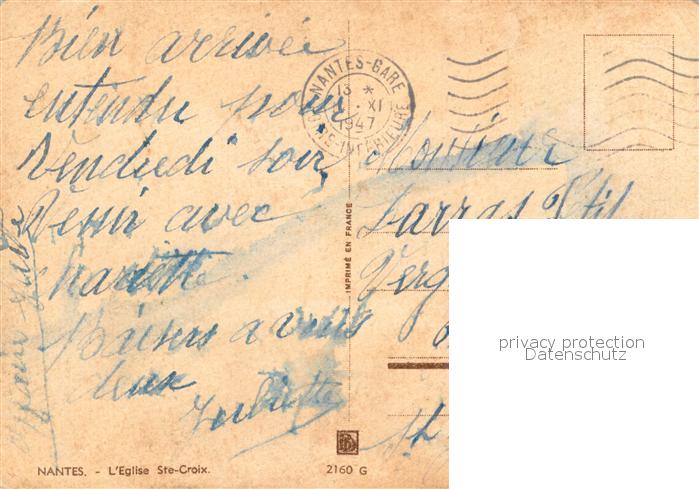 13638074 Nantes Loire Atlantique Eglise Ste Croix postalisch gelaufen Erhaltung siehe scans [WerneD78] carte postale Wern Katcode 11170044244109