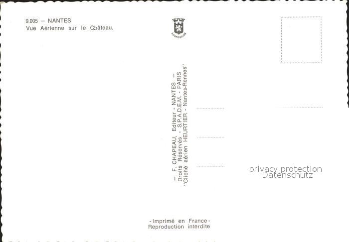 12237302 Nantes Loire Atlantique Fliegeraufnahme Chateau postalisch nicht gelaufen Erhaltung siehe scans KatCode: 11170044244109