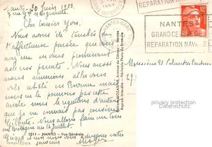 13583389 Nantes Loire Atlantique Fliegeraufnahme postalisch gelaufen Erhaltung siehe scans [KathaD81] carte postale Kath Katcode 11170044244109