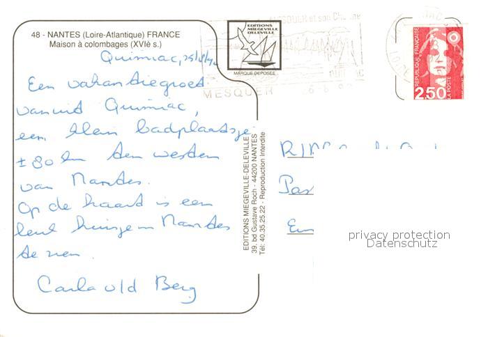 13051216 carte postale Nantes Loire Atlantique Maison a colombages postalisch gelaufen Erhaltung siehe scans [WerneD78] KatCode: 11170044244109