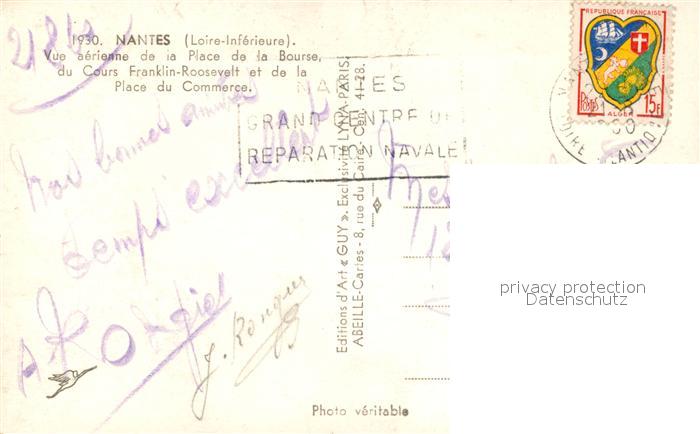 13536014 carte postale Nantes Loire Atlantique Vue aerienne de la Plae de la Bourse du Cours Franklin Roosevelt et de la Place du Commerce postalisch gelaufen Erhaltung siehe scans [WerneD78] KatCode: 11170044244109