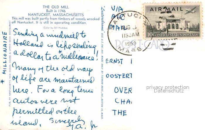 72740059 old postcard Nantucket The Old Mill postalisch gelaufen Erhaltung siehe scans [WerneD78] KatCode: 14140230000000