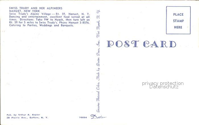 11688569 Nanuet Swiss Trudy Alpine Village Dancing Entertainement postalisch nicht gelaufen Erhaltung siehe scans KatCode: 14140340000000