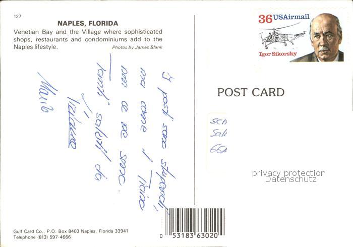 72583976 old postcard Naples Florida on the Gulf Venetian Bay postalisch gelaufen Erhaltung siehe scans [LiesaD40] KatCode: 14140110000000