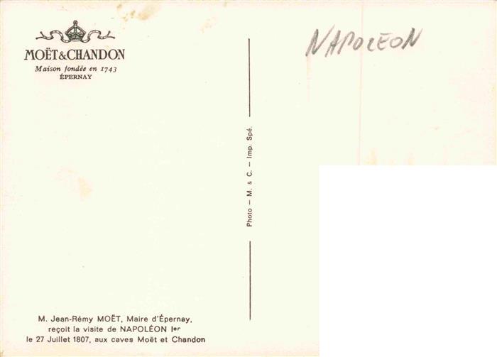 74013577 Napoleon Bonaparte Adel Jean-Remy Moet Chandon postalisch nicht gelaufen Erhaltung siehe scans [SanaeD93] KatCode: 22400000002100