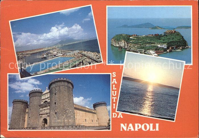 old postcard Napoli Neapel Burg Hafen Sonnenuntergang postalisch gelaufen Erhaltung siehe scans