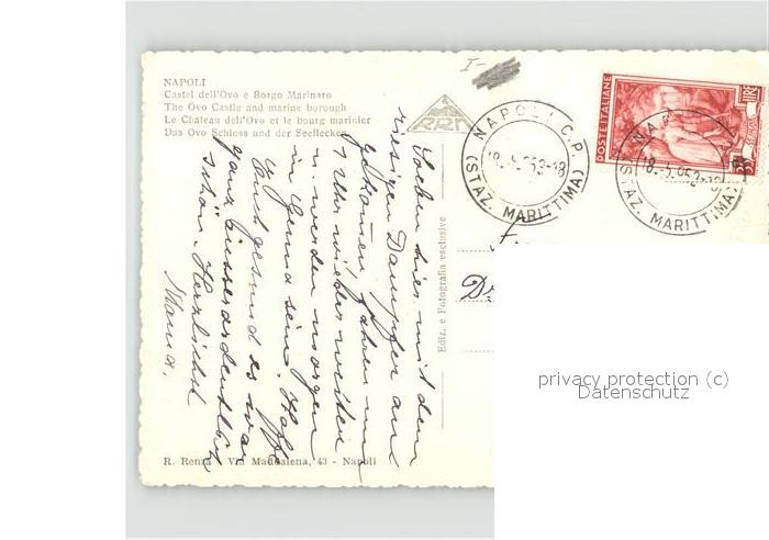old postcard Napoli Neapel Castel dell’Ovo e Borgo Marinaro Ovo Schloss und der Seeflecken postalisch gelaufen Erhaltung siehe scans