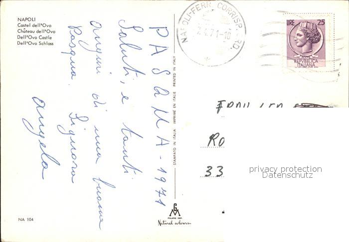 old postcard Napoli Neapel Dell Ova Schloss postalisch gelaufen Erhaltung siehe scans